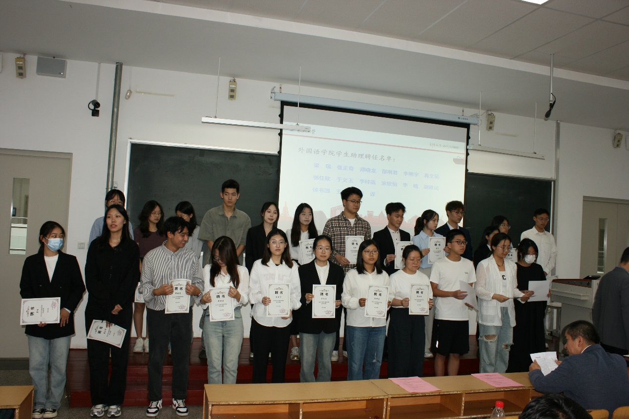 英语2203班陈晨晨和日语2101班蒋文昊作为受聘学生代表讲话,他们对老师们给予的信任表示衷心感谢,并承诺将以高度的责任心和严谨的工作态度,时刻坚守为同学服务的初心,尽职尽责完成各项工作,承担起学院和学生间沟通桥梁的纽带作用,尽心尽力为学院发展贡献力量。
