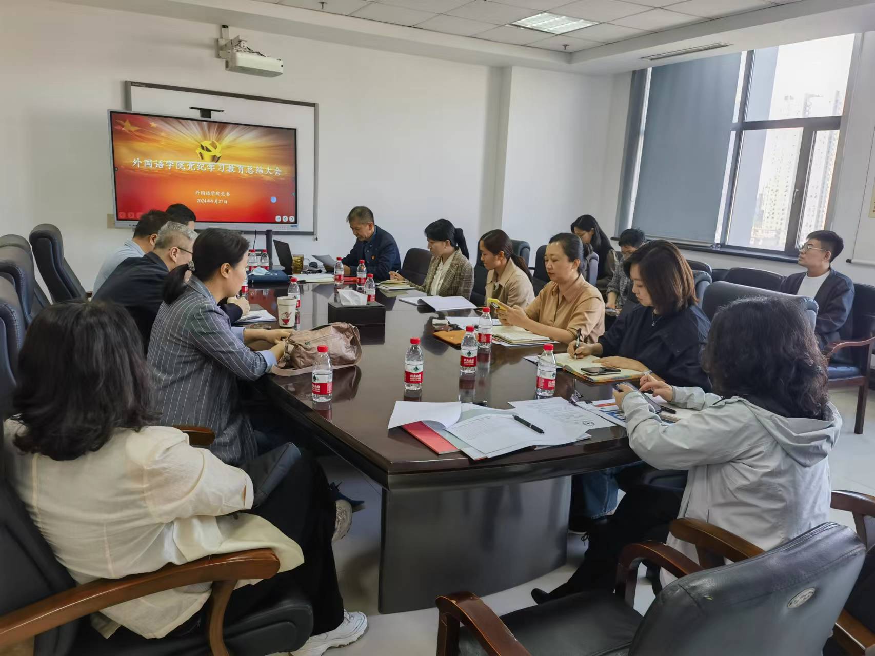 2024 年 9 月 27 日,色情视频 在主楼1004室召开党纪学习教育总结会议。学院领导班子成员、党委委员、教职工党支部书记、正科级干部、组织员、党务秘书参会,学院党委书记张满胜主持会议。