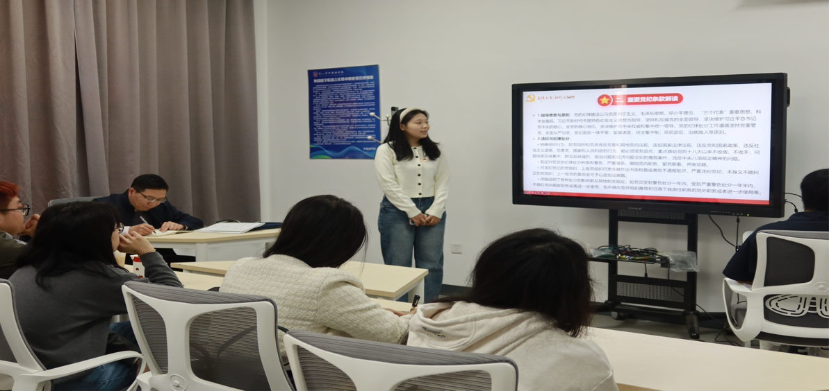 会上,李雨桐首先进行党纪知识专题讲座。讲座内容涵盖党的纪律体系、重要党纪条款解读、违反党纪的典型案例分析等,通过深入浅出的讲解,让全体党员对党纪有了更加全面、系统的认识。