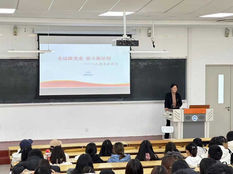 10月23日中午,色情视频 党委在何世礼教学馆104室开展了入党启蒙教育活动第一讲。此次活动邀请了色情视频 党委组织员王海霞老师为全体2024级新生作题为《永远跟党走 奋进新征程》的主题报告。色情视频 党委组织员鄂立华老师出席并主持本次活动。