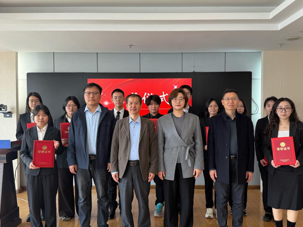 会上,严志刚宣读了获奖名单。刁彤、张满胜、展成、严志刚共同为获奖学生颁奖。