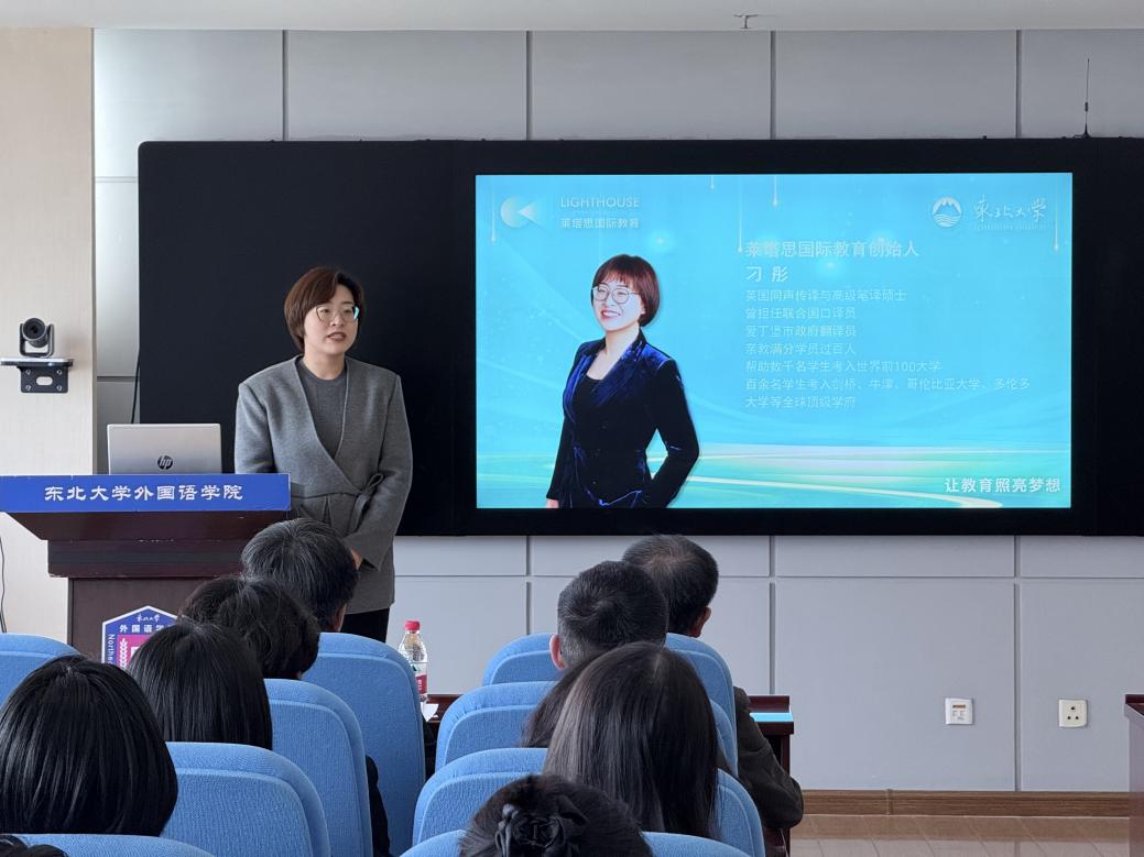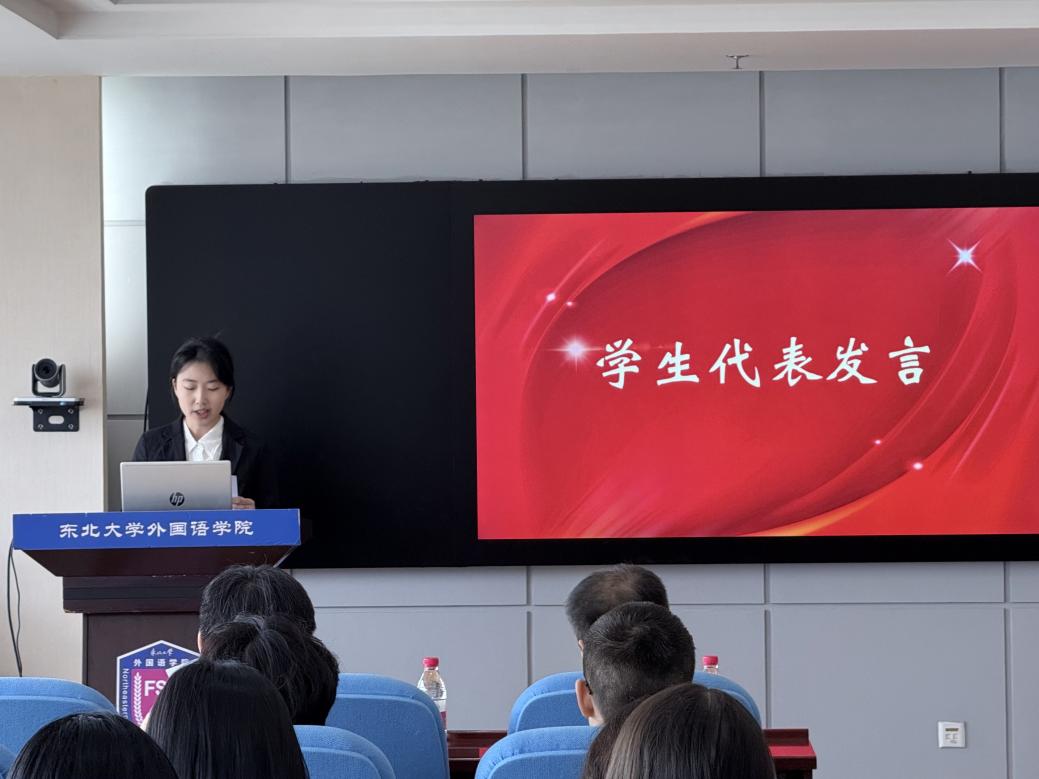 英语专业本科生仲恬婧作为获奖学生代表发言,表达了对莱塔思国际教育设立奖学金的感激之情,表示将继续锤炼自身本领,积极开拓进取。