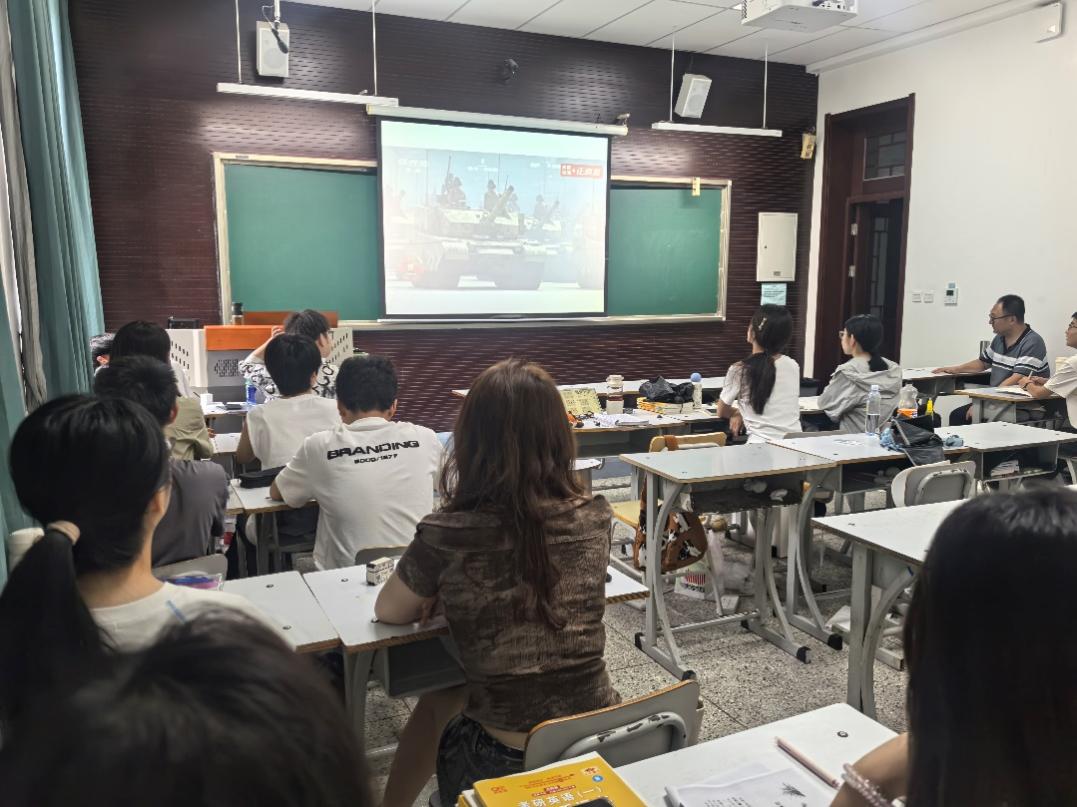 观看过程中,师生们全程专注,认真聆听习近平总书记在纪念中国人民抗日战争暨世界反法西斯战争胜利80周年大会上的重要讲话,深刻领会抗日战争胜利的重大历史意义与深远时代价值,不时为大会的庄严时刻、为国家的强大力量动容。阅兵式环节,看着屏幕上整齐划一的受阅方阵迈着铿锵步伐通过天安门广场,各类先进武器装备依次亮相,现场师生的自豪之情油然而生,掌声与赞叹声此起彼伏。