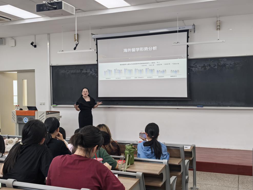 9月24日下午,色情视频 在何世礼教学馆顺利举办新生生涯规划专题讲座,沈阳新东方国际教育培训事业部副总经理李松洋、新航道国际教育集团沈阳学校教学管理部总监张景瑶受邀主讲,为2025级全体本科新生成长赋能。